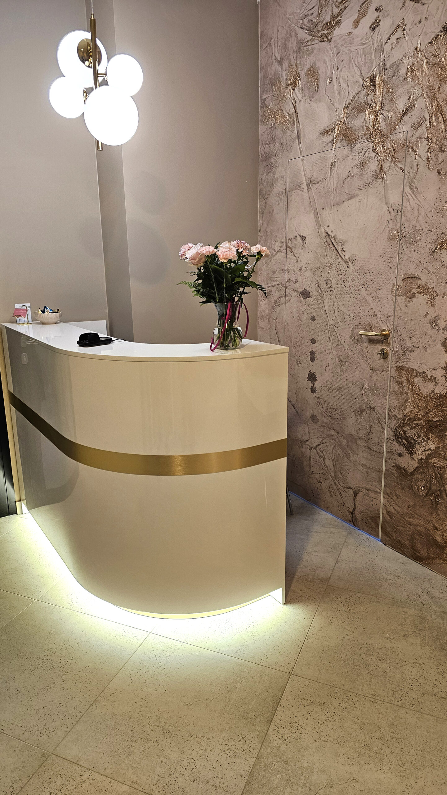 W ramach wersji PRESTIGE lada może posiadać podświetlane logo lub napis umieszczony za szklaną szybą oraz być wykonana z płyty w połysku.