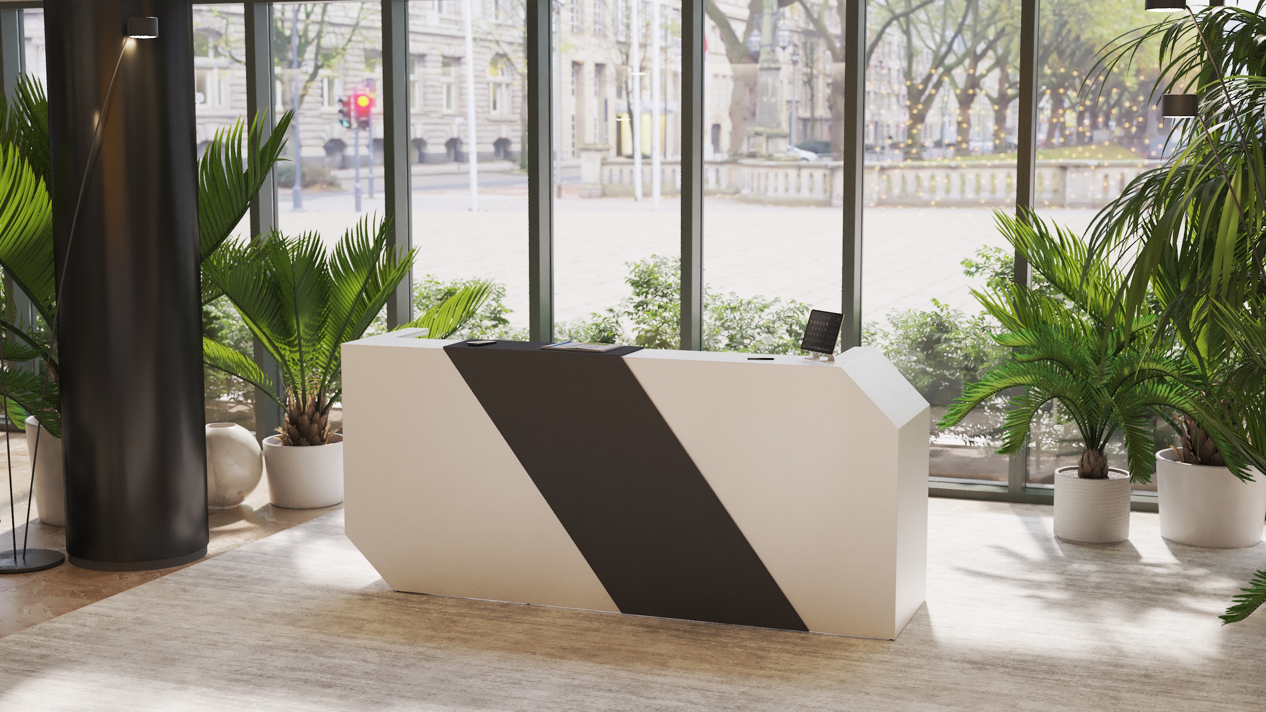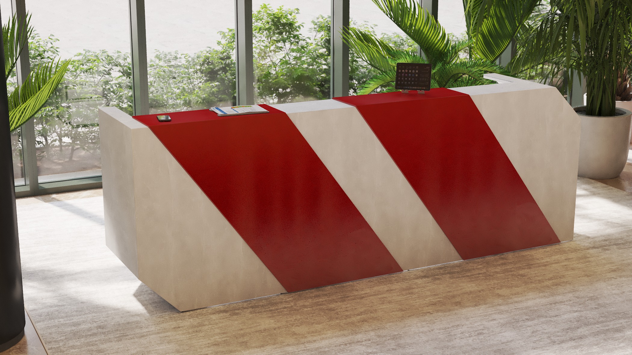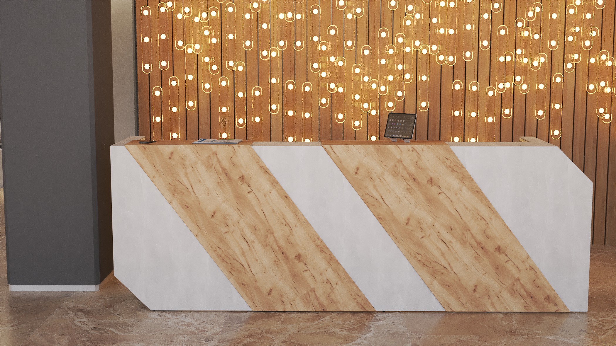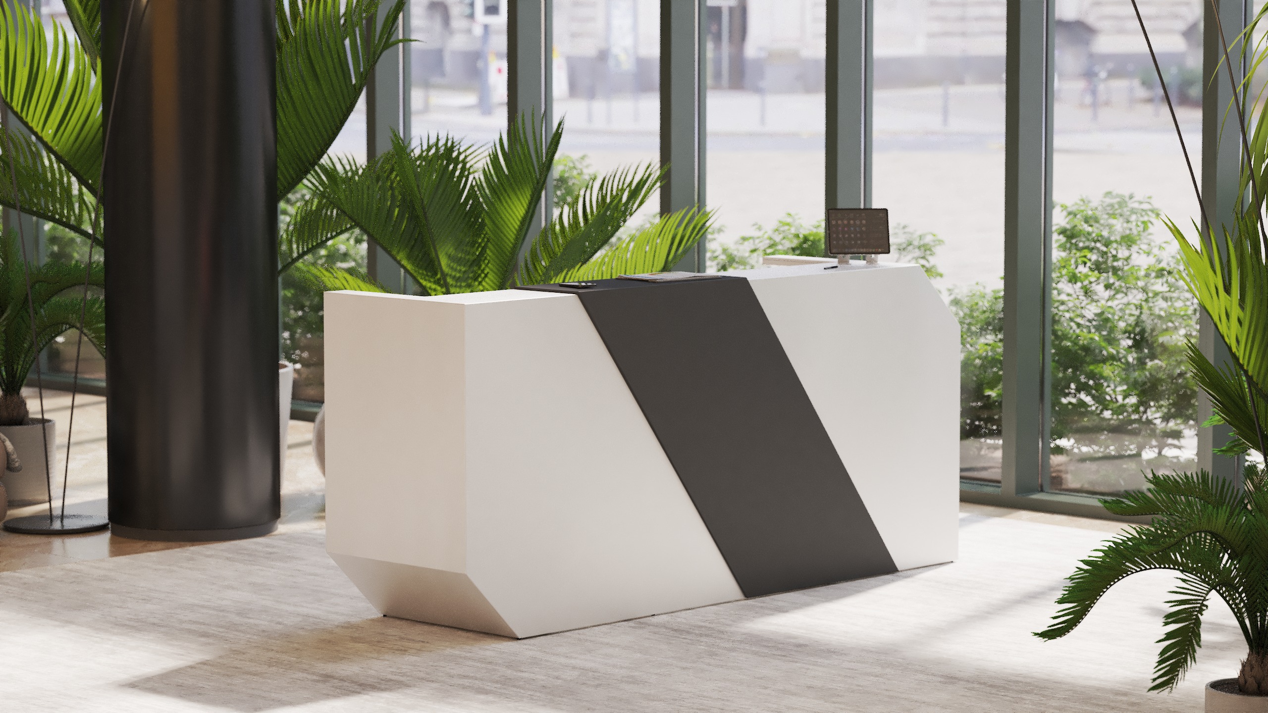 Monolityczna bryła o gładkiej i geometrycznej bryle to recepcja R154. Ciekawe cięcia otulone bezrantowym corianem już na pierwszy rzut oka wydają się luksusowe. Ciekawie nadgryziony korpus z elementami kontrastowymi tworzy nowoczesna całość. Recepcja R154 to wybór dla odbiorców ceniących najwyższą jakość i nowoczesne rozwiązania.