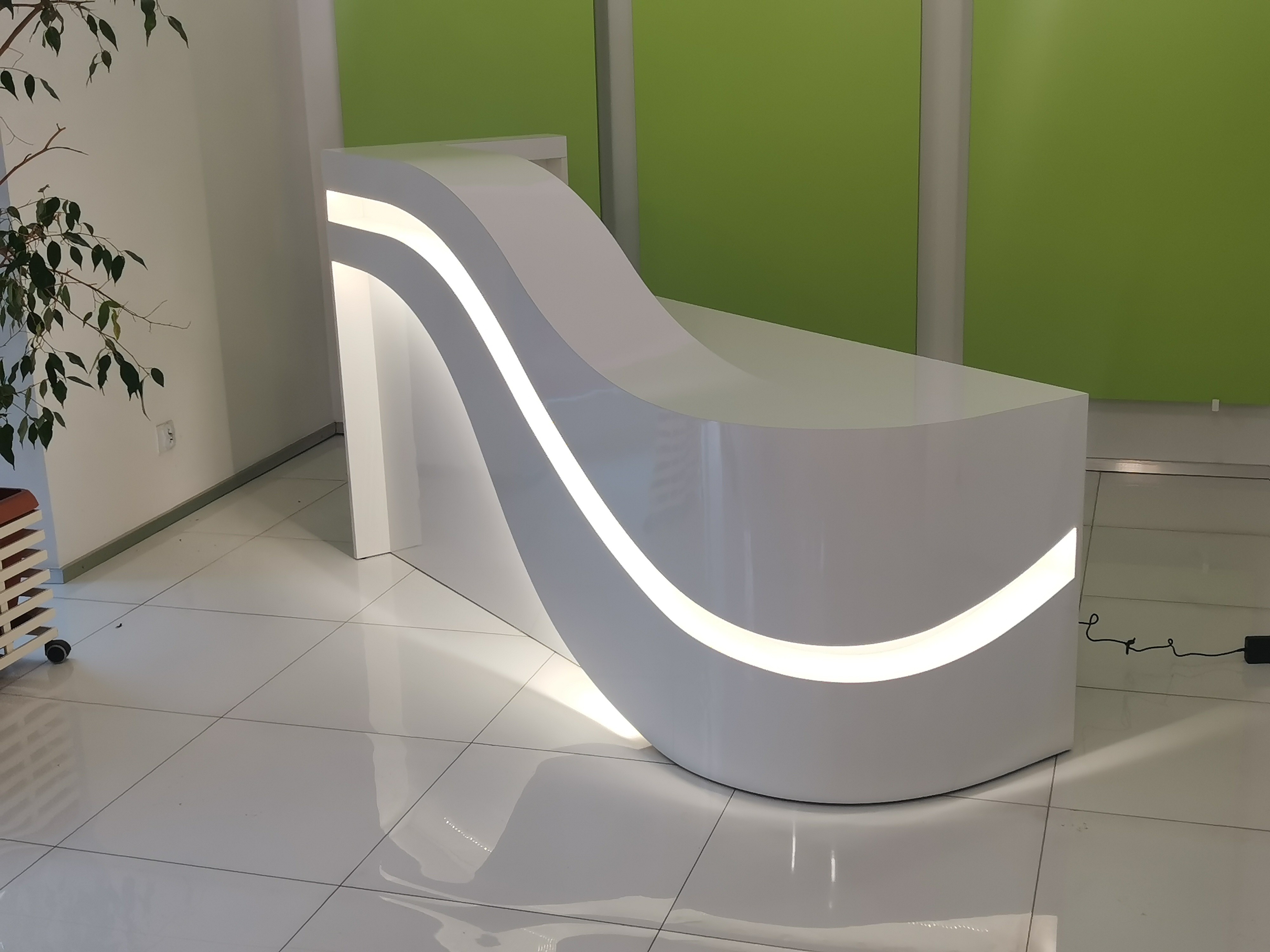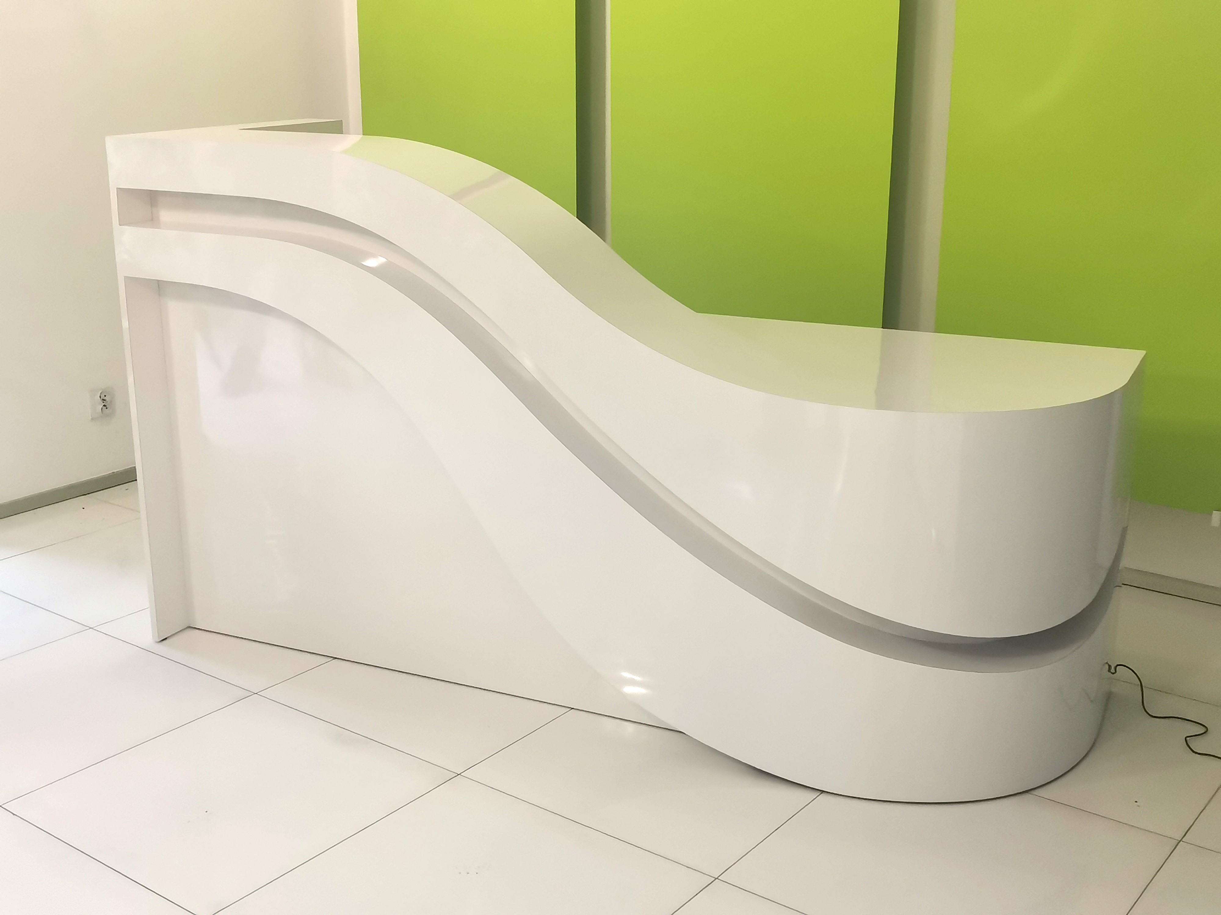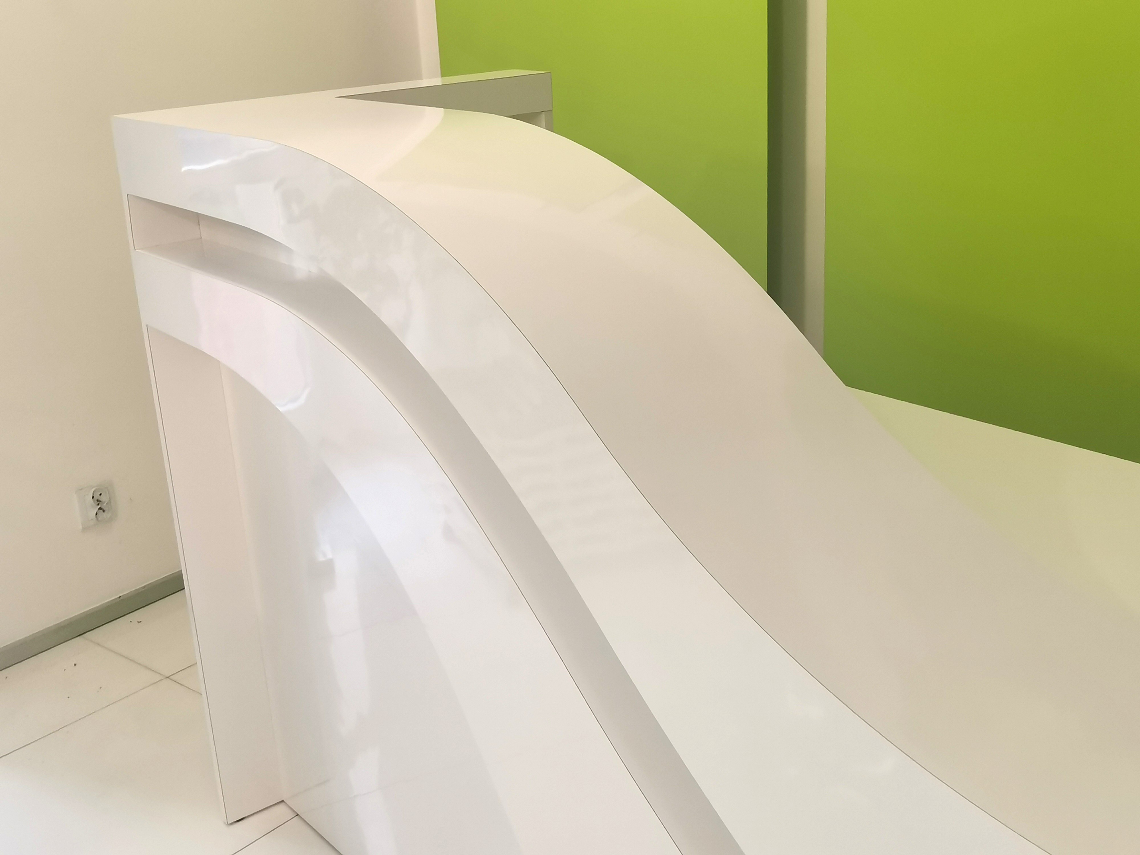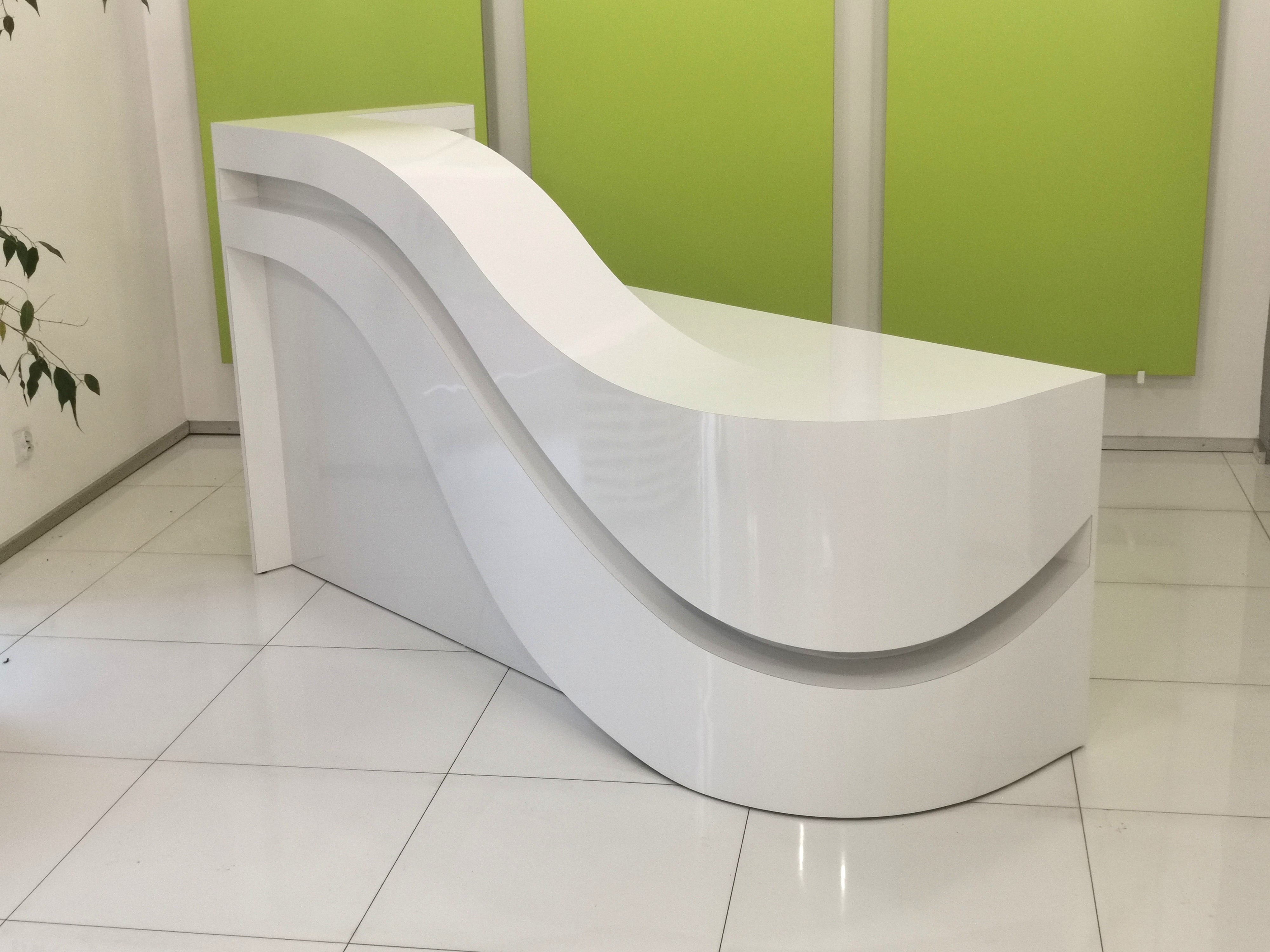 Kosmopolityczne wnętrza wymagają szczególnej oprawy i taką stanowi lada R218. Zupełnie wyjątkowy kształt podbity został jeszcze dodatkowo płynnymi przejściami poziomów blatów oraz cięciami kolorystycznymi. Piękna i nadzwyczajna recepcja R218 będzie uzupełnieniem przestrzeni dla wyniosłych angielskich boazerii czy kryształowych żyrandoli ale dumnie się zaprezentuje także w przestrzeniach neutralnych stanowiąc główny punkt recepcji.