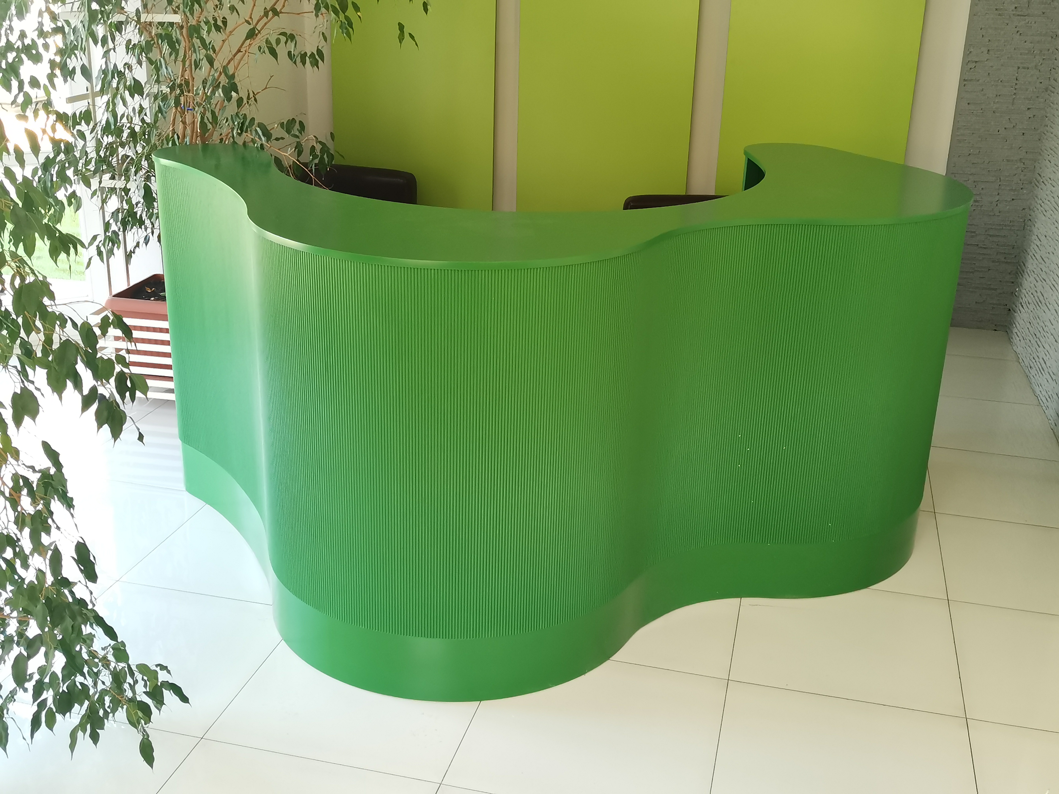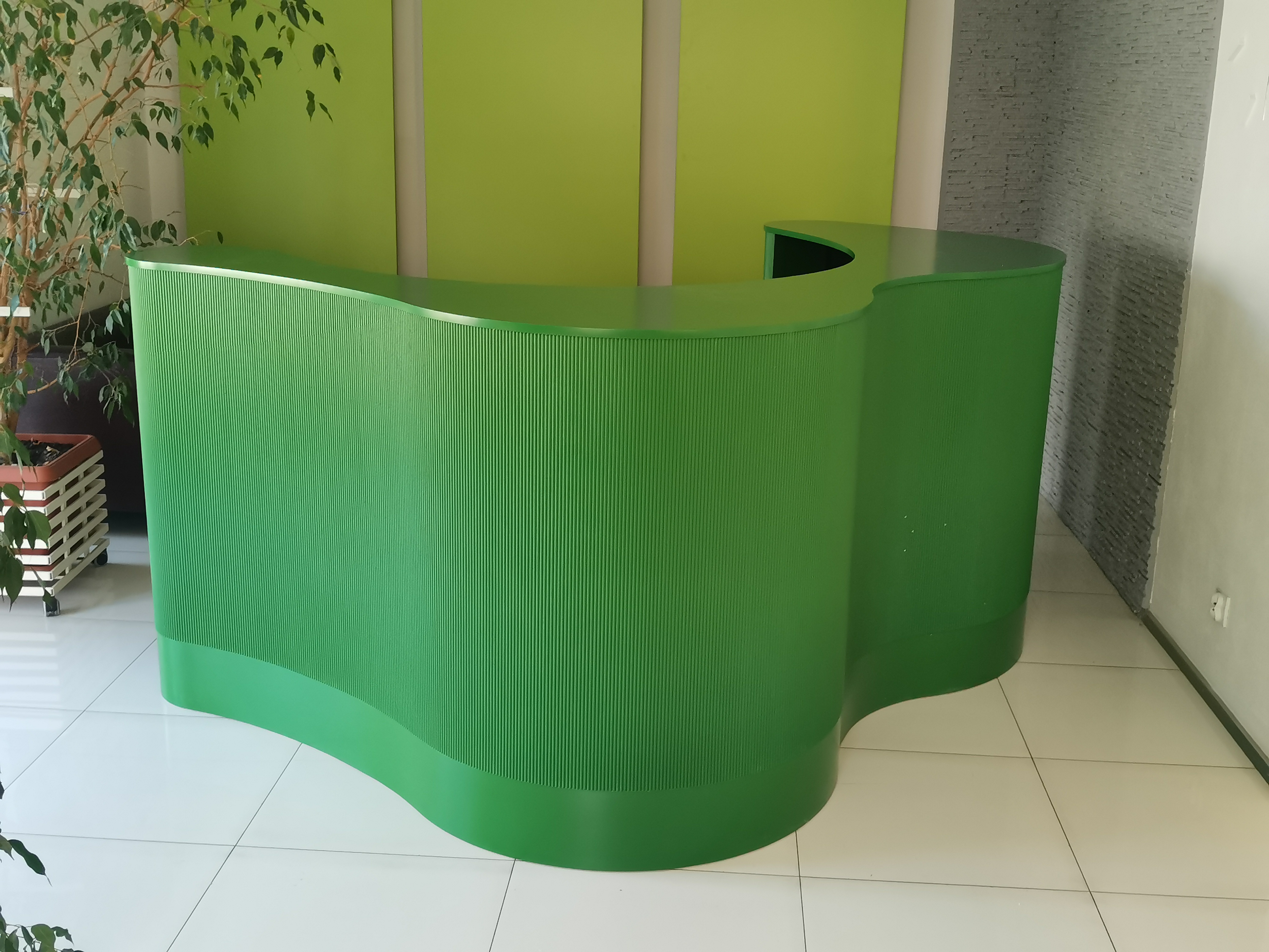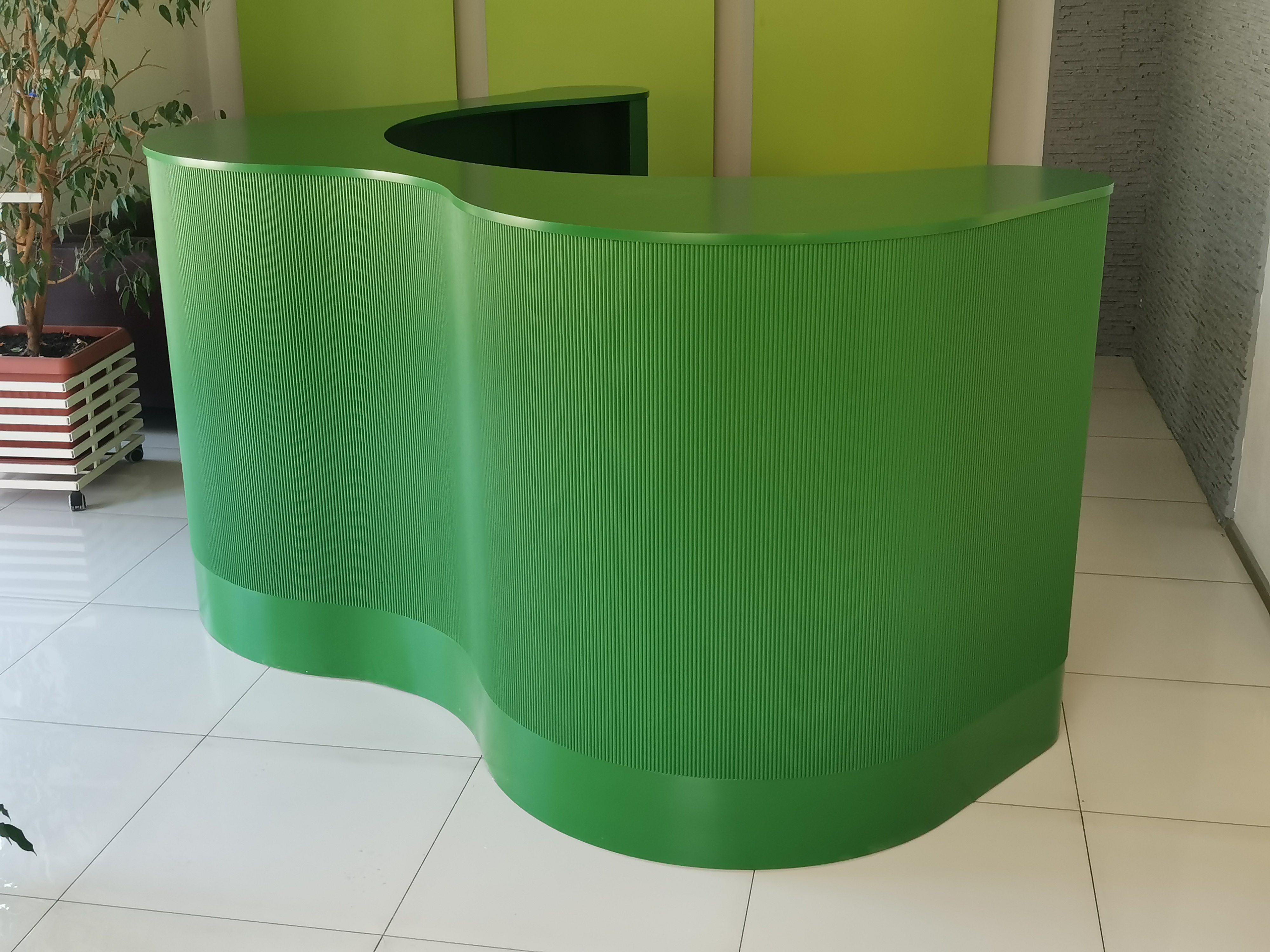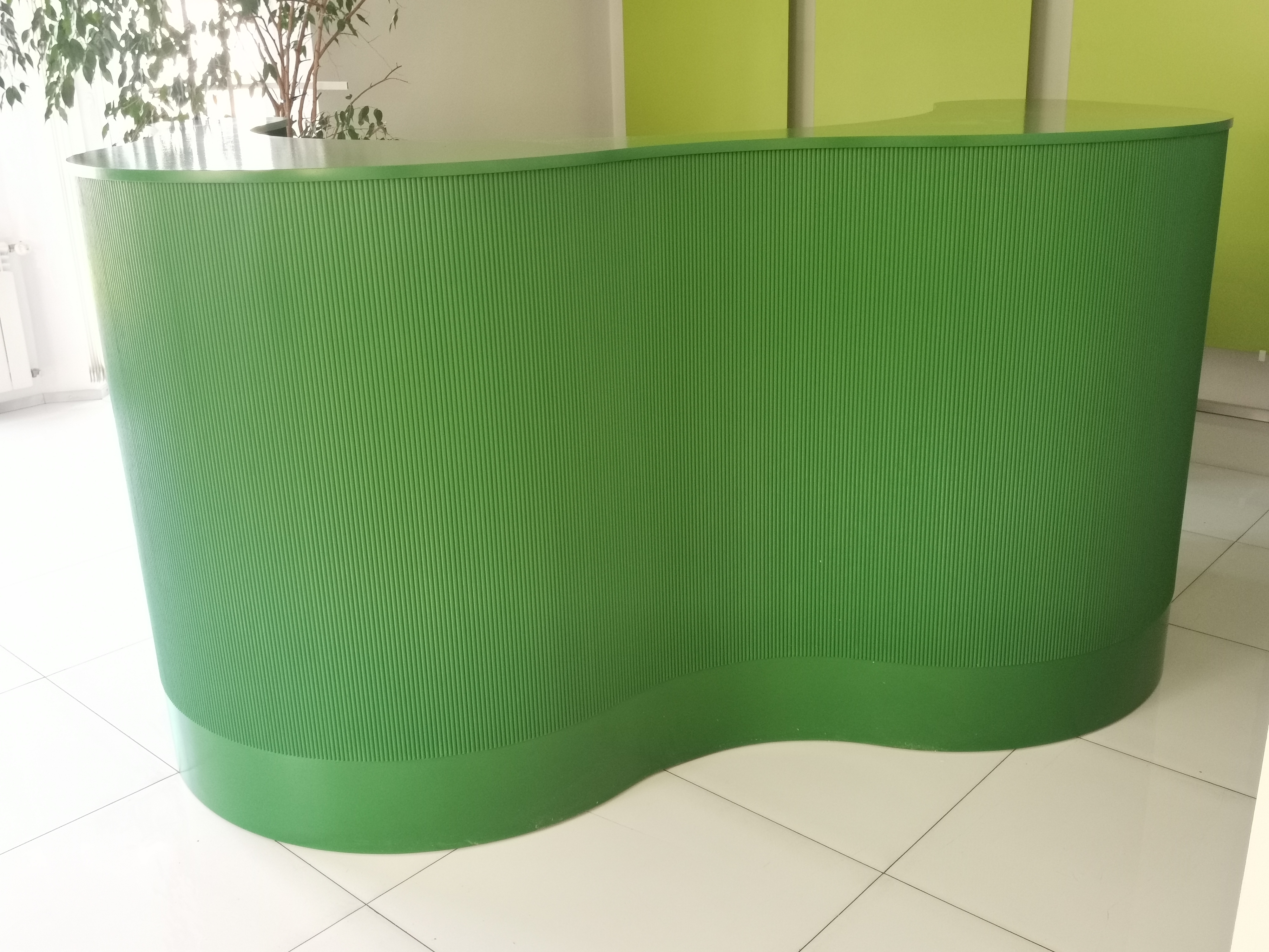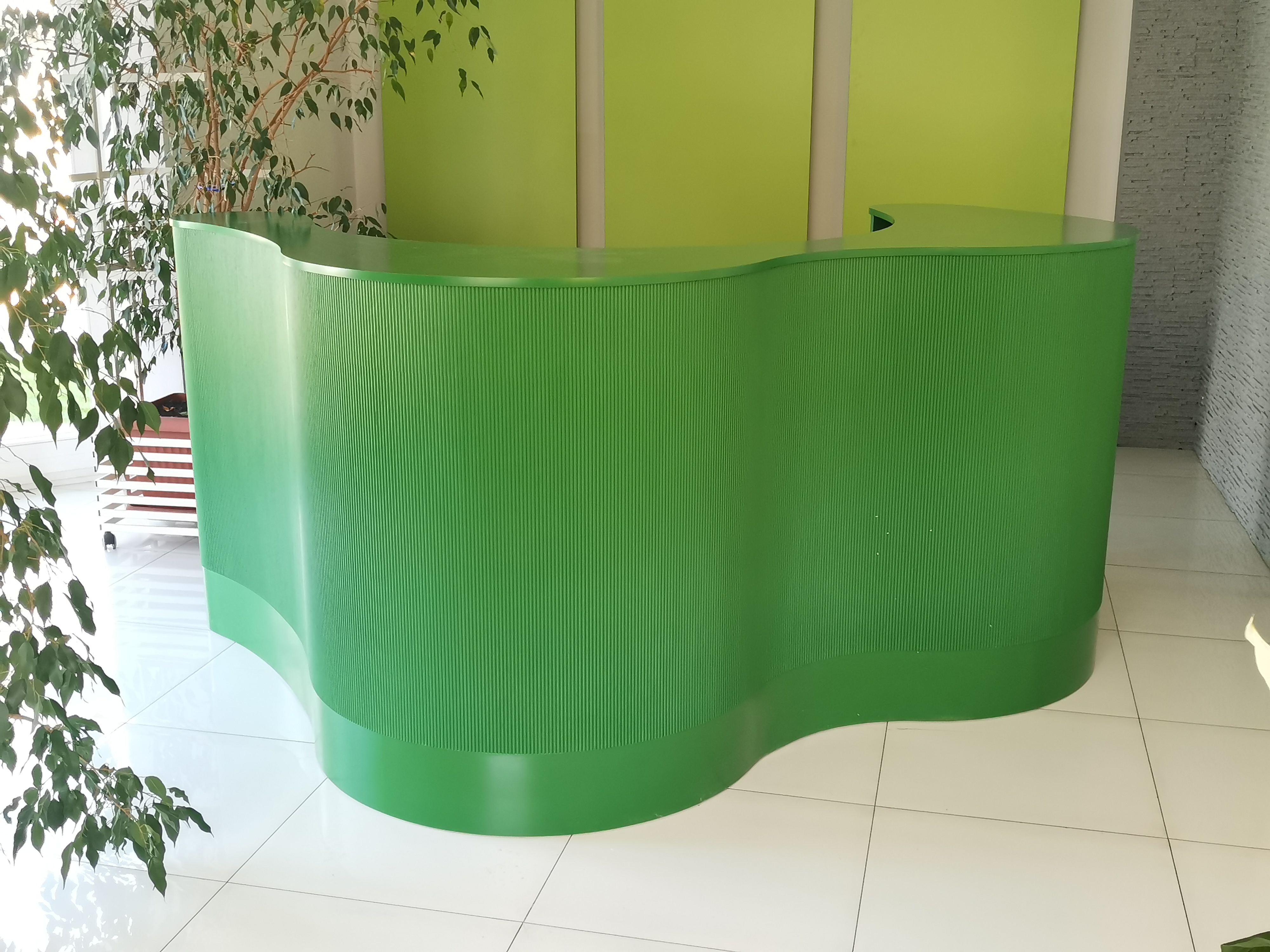 Luksusowe wnętrze z naciskiem na nietuzinkowe wzornictwo wymaga oprawy niecodziennej jaką jest recepcja R254. Idealnie dobrane frezowanie w formie półokrągłych wałeczków pięknie okala falujący front, dodatkowy dobór odpowiedniego koloru dla wykończenia drewnianych elementów pozwoli stworzyć spójną, miłą dla oka oraz pobudzającą zmysły recepcję.